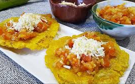 Se sirve el puré de cayeye caliente, se vierte una porción generosa de la salsa mexicana por encima, y se corona con queso rallado.