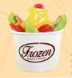 2 Porciones de Helado, Mix de Frutas (Kiwi, Fresa Durazno), Leche Condensada, Crema Chantilly. Contenedor de 16onz