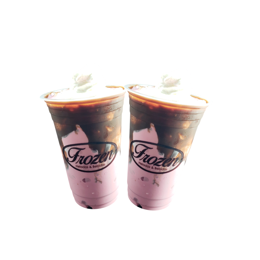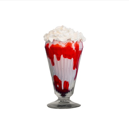 Helado batido con leche, crema chantilly, salsa de cereza o chocolate. Vaso sellado 16 oz.