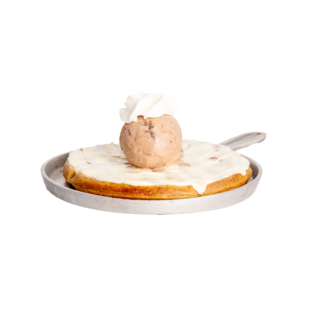 Waffle, 1 Porción de Helado, Cobertura de chocolate Blanca, Crema Chantilly.