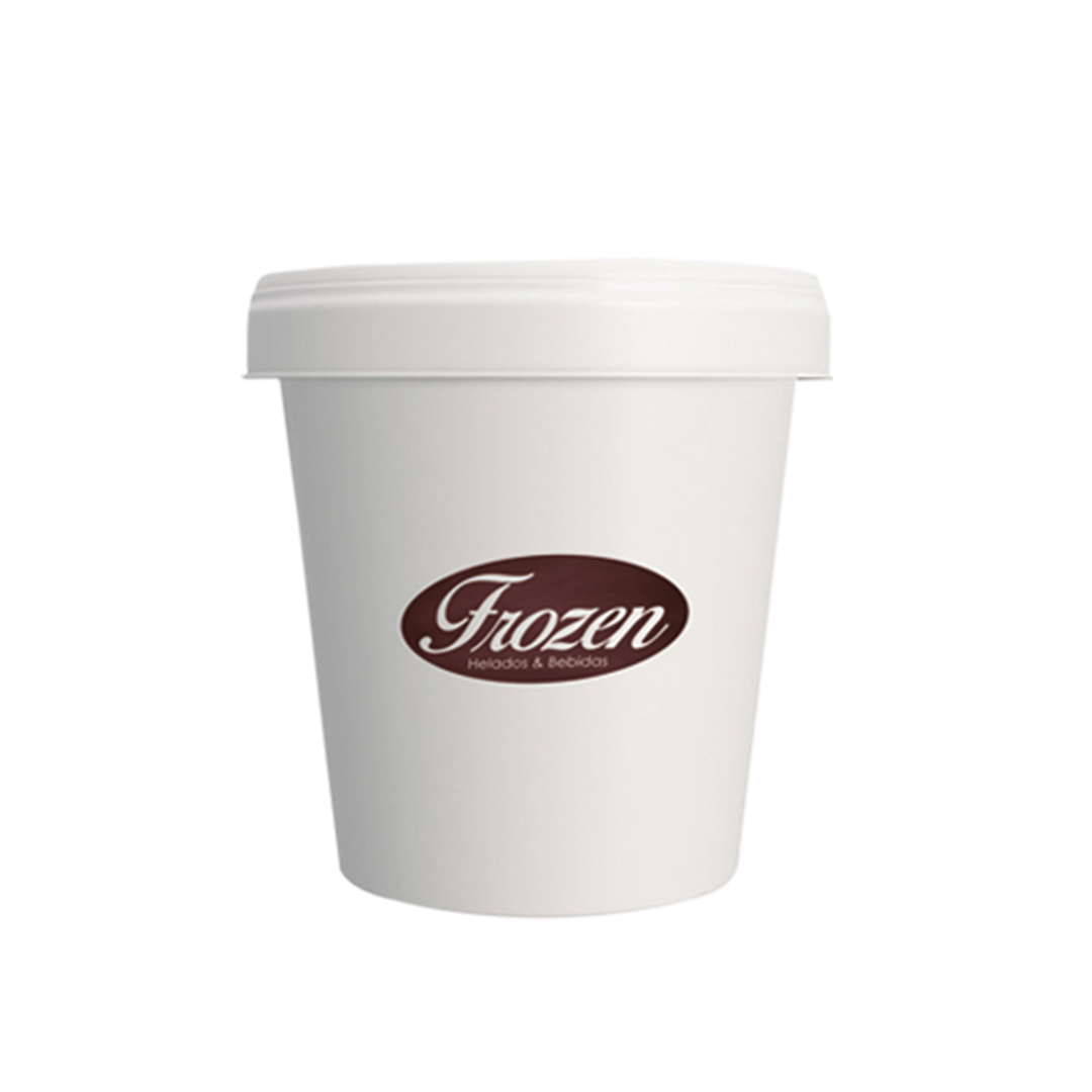 2 Porciones de Helado, Mix de Frutas (Kiwi, Fresa Durazno), Leche Condensada, Crema Chantilly. Contenedor de 24 oz.