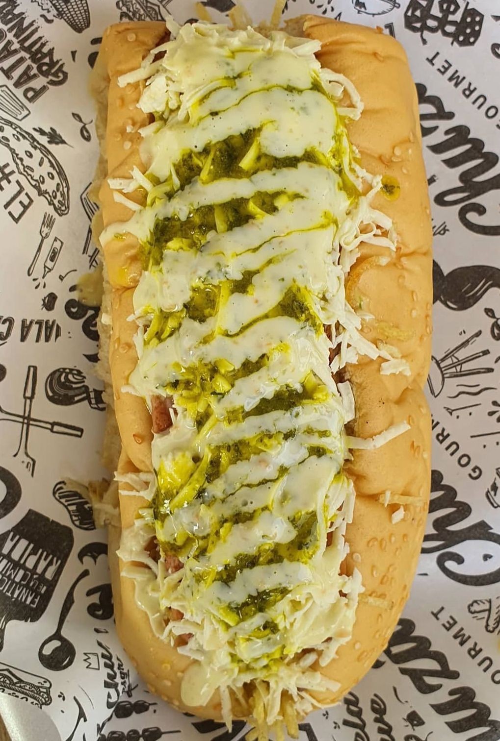 Un delicioso pan de mantequilla premium, relleno con salchicha delichip, lechuga, queso mozzarella, chongo, chimichurri picante, piña y nuestra deliciosa salsa de la casa.