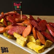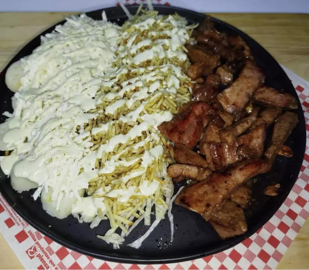 Deliciosas papas a la francesa, salchicha delichips, acompañados de chorizo, butifarras hecho al grill, lechuga, queso costeño, chongo, piña y salsa especial de la casa.