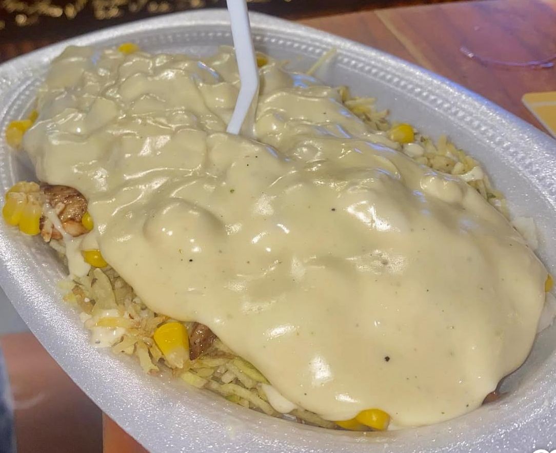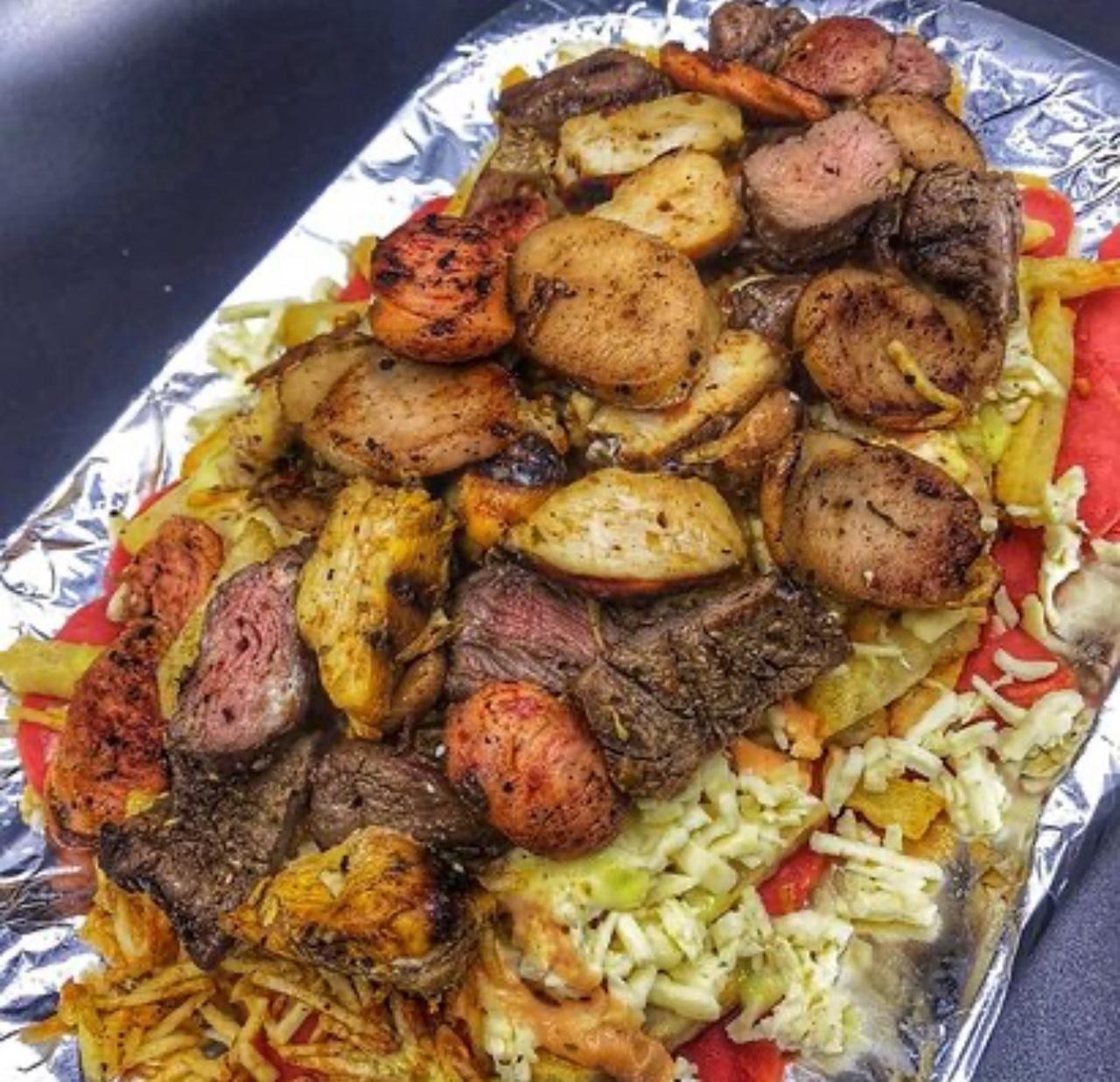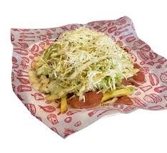 Deliciosas papas a la francesa, salchicha delichips, pollo, chorizo, butifarra hecho al grill, lechuga, queso costeño, chongo, piña y salsa especial de la casa.