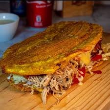 Doble porción de patacón, ambas hechas con plátano verde frito, acompañado de chorizo, butifarra, lechuga, chongo, queso costeño y nuestra especial salsa de la casa.