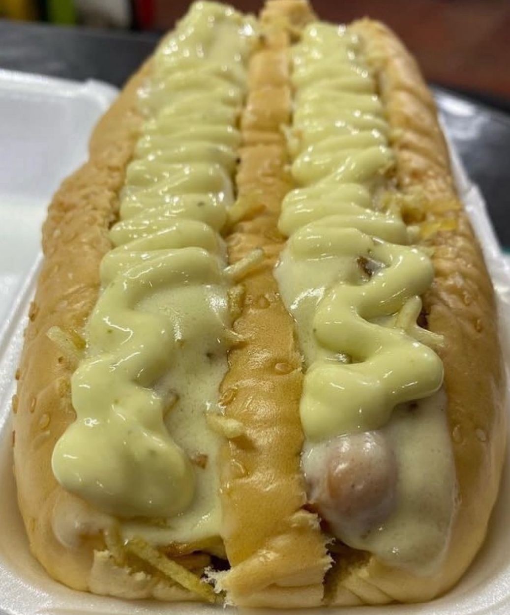 Dos deliciosos panes de mantequilla premium, rellenos de salchicha delichip, lechuga, queso costeño, chongo, piña y nuestra deliciosa salsa de la casa.