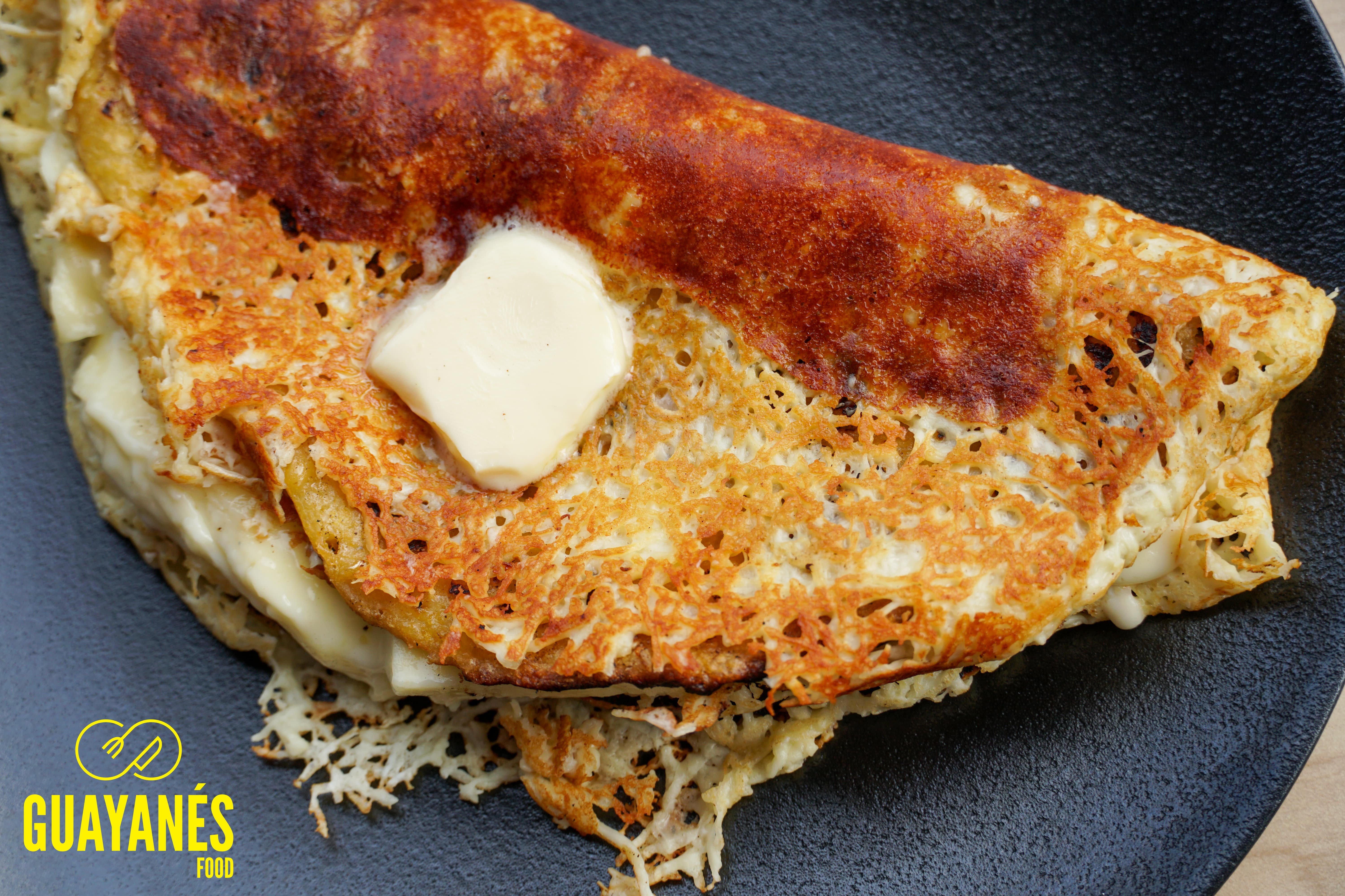 Rellena de queso mano o guayanés, forrada en doble queso.