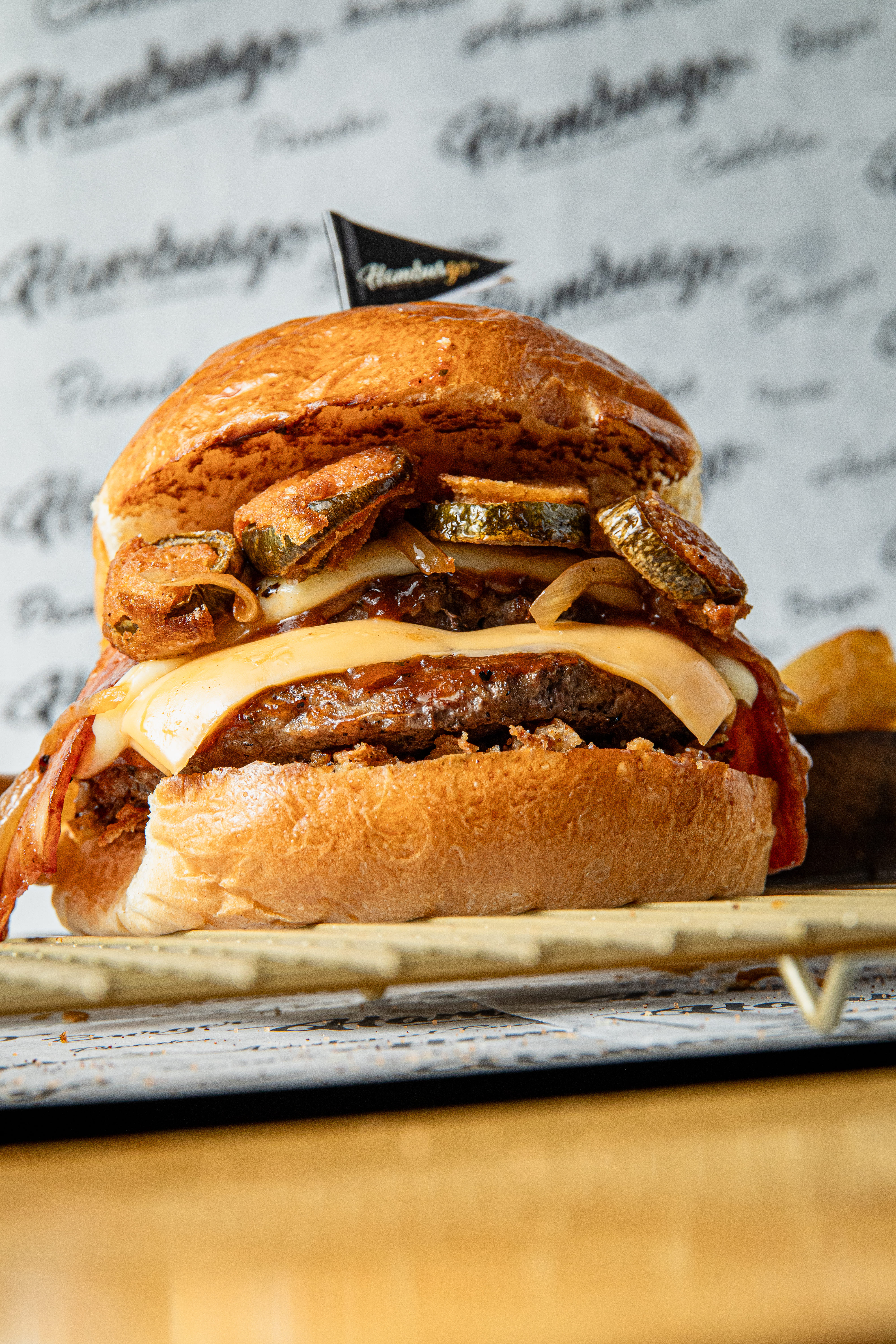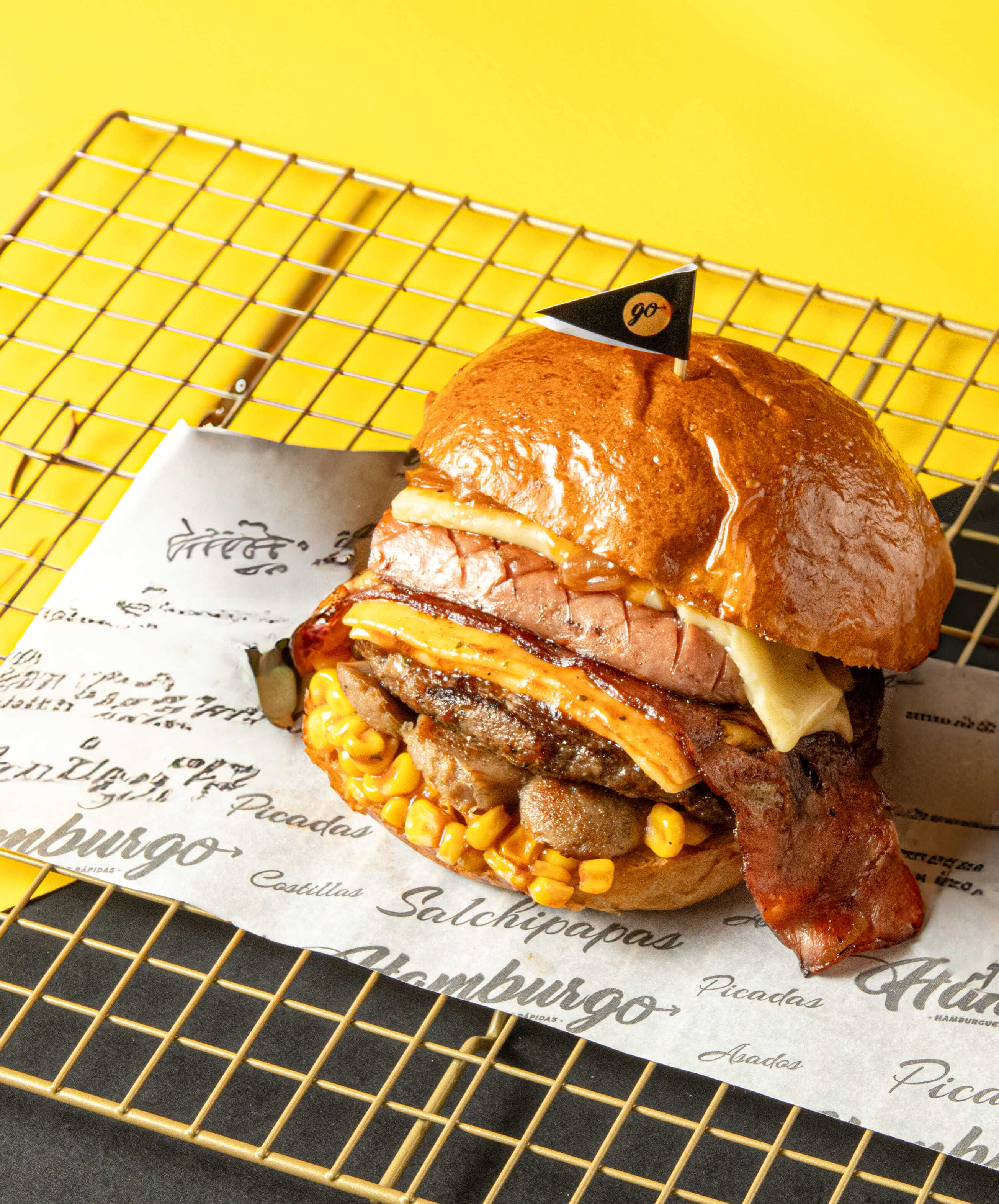 Pan artesanal, doble carne angus, cebolla grilled, tocineta crocante, jalapeño apanado, queso cheddar, doritos y salsa de la casa.