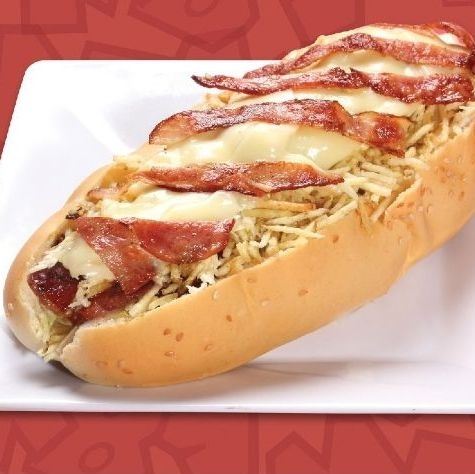 Pan, papa chongo, salchicha, mozzarella, papás francesas