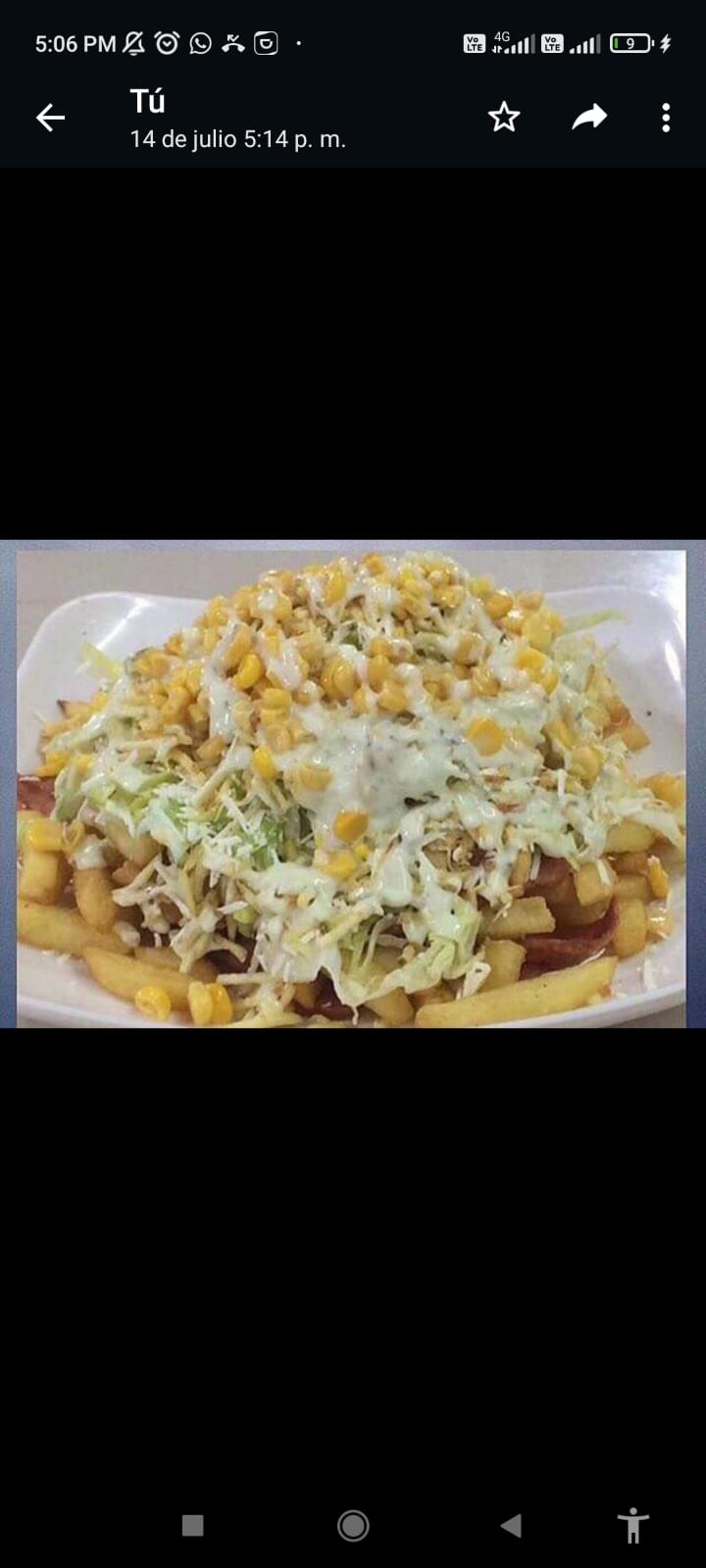 Papás Francesas, chorizo, butifarra , lechuga, chongo, queso y salsa de la.la.casa