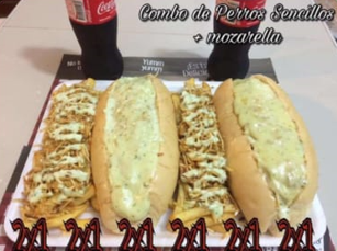 2 perros con mozarella + 2 xciones de papas +2 gaseosas