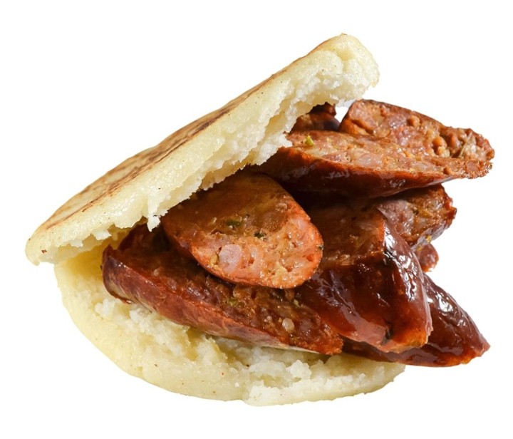 arepa rellena de chorizo artesanal ahumado y jugoso
