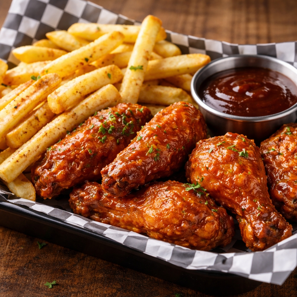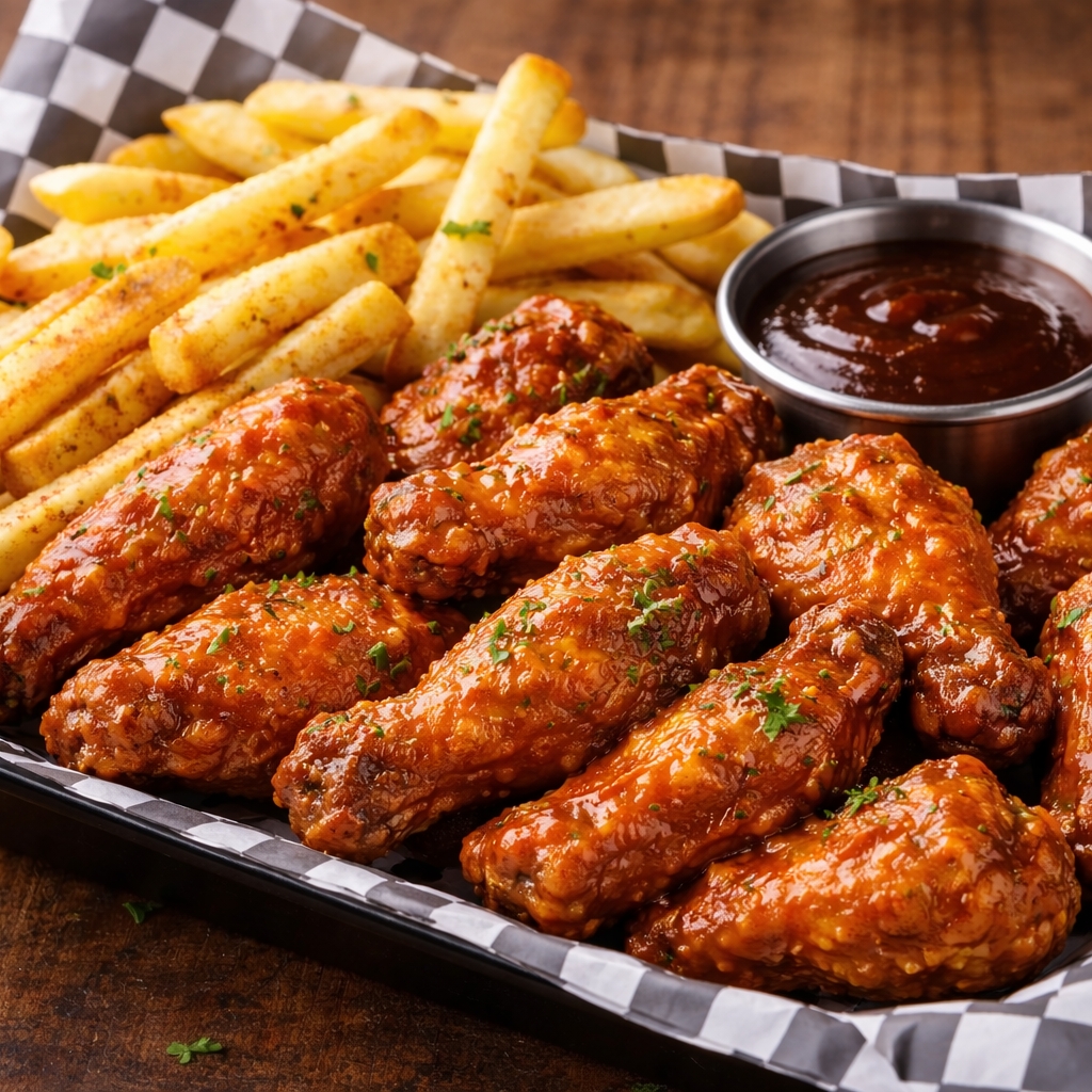 6 unidades: bañadas en nuestra salsa BBQ artesanal, servidas con una porción de papas francesas. ¡El sabor clásico que nunca falla!