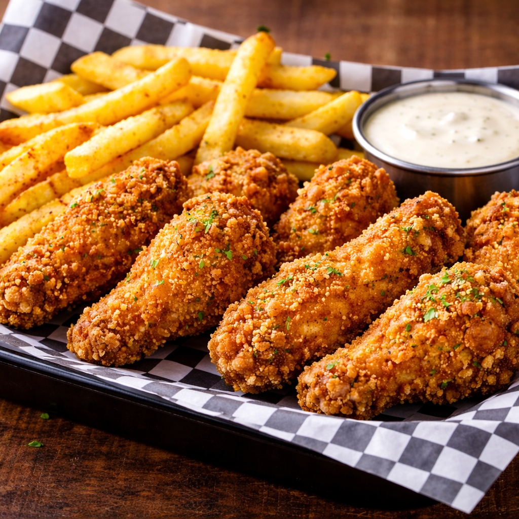 6 unidades: crujientes alitas apanadas al mejor estilo broster, acompañadas de una ración de papas francesas. ¡Máximo crunch en cada mordida!