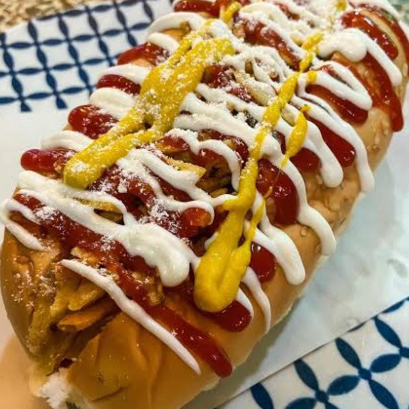 Perro Gratinado con Tocineta + Papas