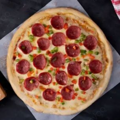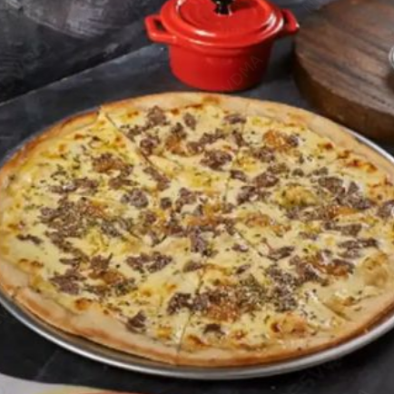 Pizza con lomito de res, cebolla caramelizada, salsa ranch y orégano.