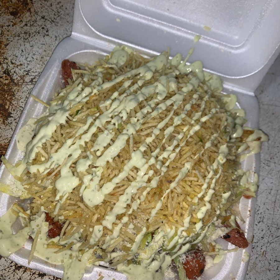 Papa, salchicha,queso, lechuga, chongo y salsa