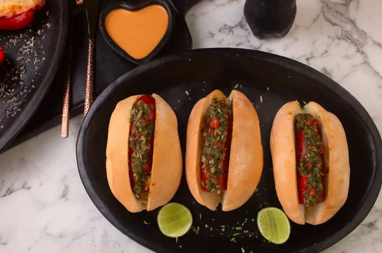 3 Unidades de chorizo artesanal de cerdo, chimichurri casero, pan francés y queso mozzarella.
