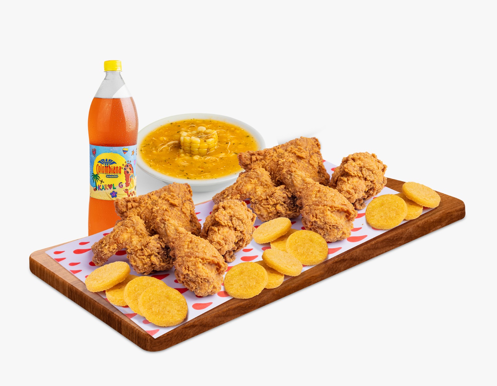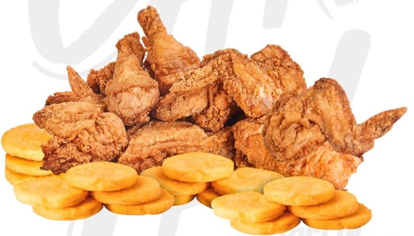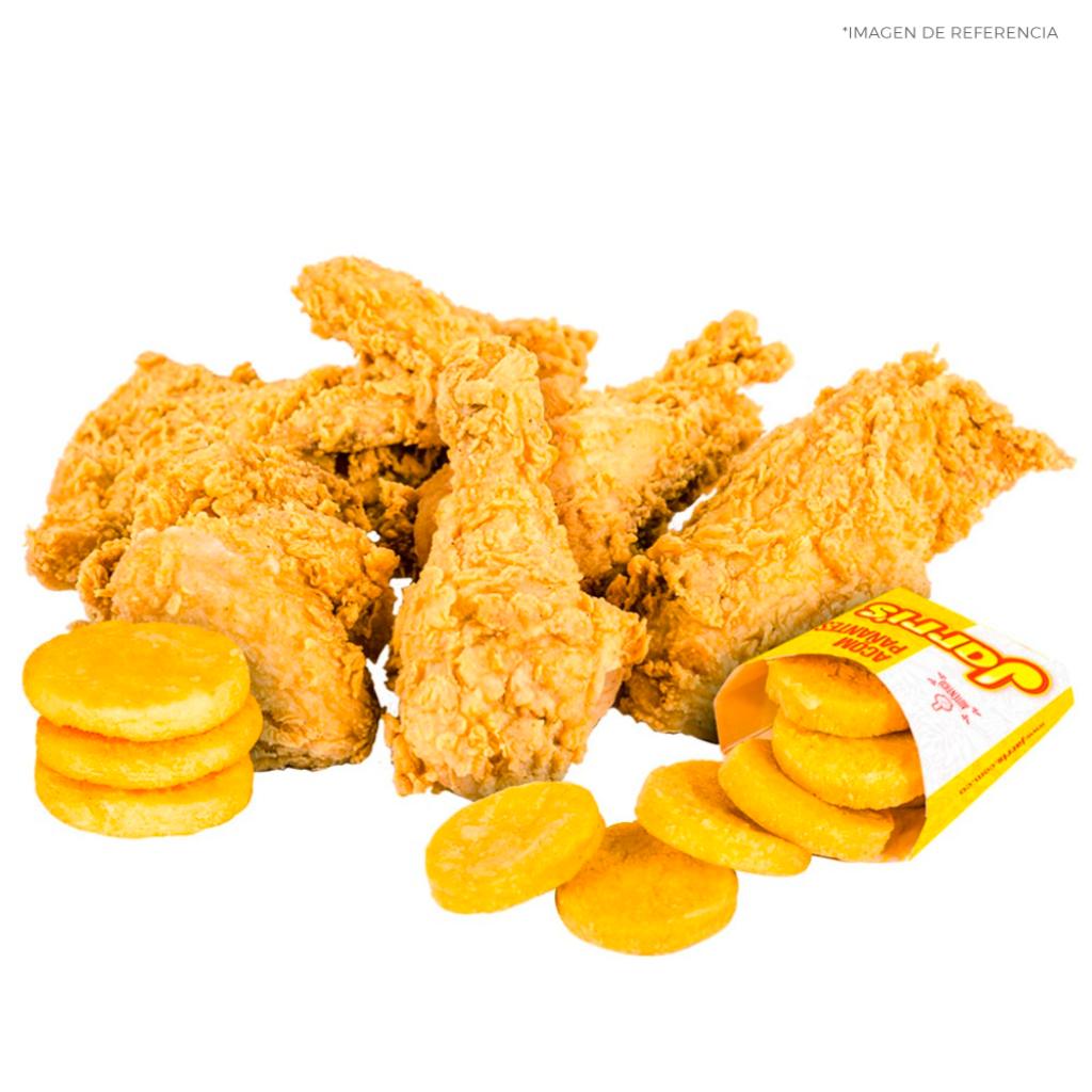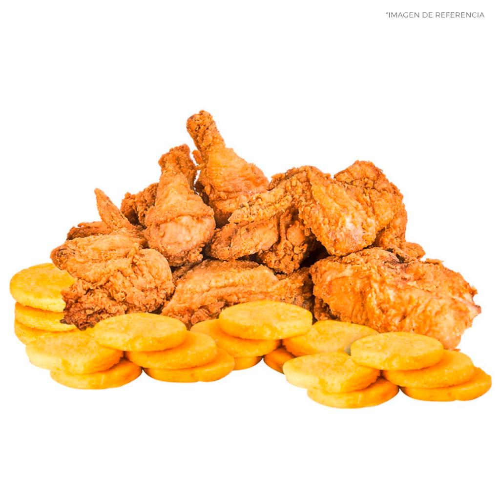 Compuesto por 10 presas, 20 arepas fritas, 5 miel, 3 salsa tomate, 3 salsa rancho.