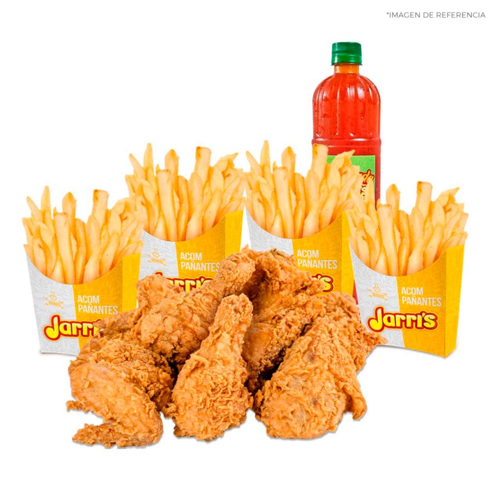 Nuestro combo 4 de pollo jarri's con papas a la francesa incluye: 4 presas de pollo broaster Jarri's 2 porciones de papas medianas a la francesa.