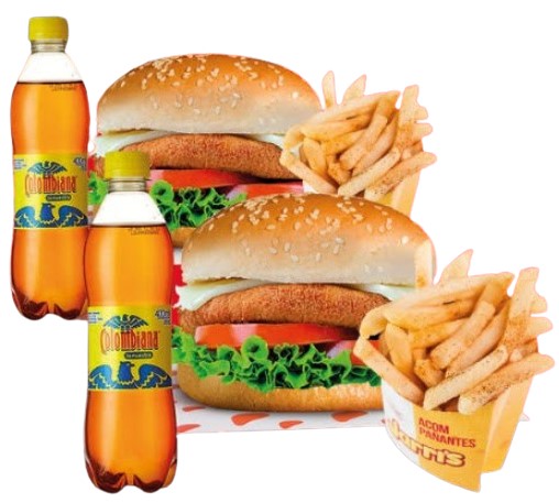 2 hamburguesas de pollo sencilla + 2 adicionales de francesa + 2 gaseosas pet 400ml