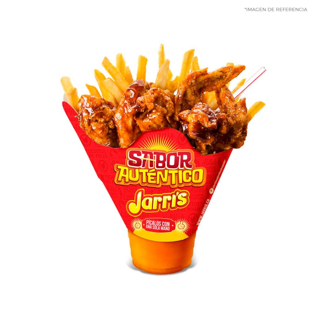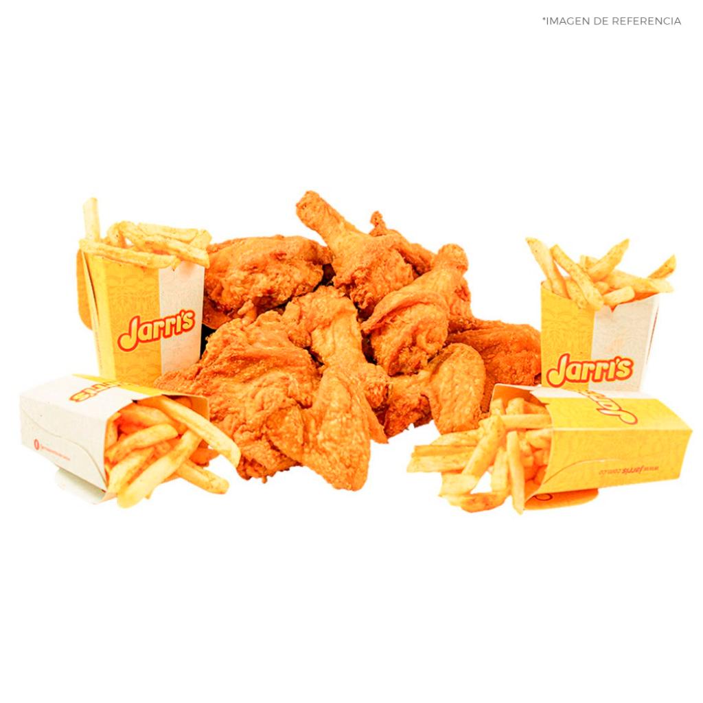 Nuestro delicioso pollo jarri's en combo con papas a la francesa, incluye: 8 presas de pollo broaster Jarri's + 4 porciones de papas medianas a la francesa.