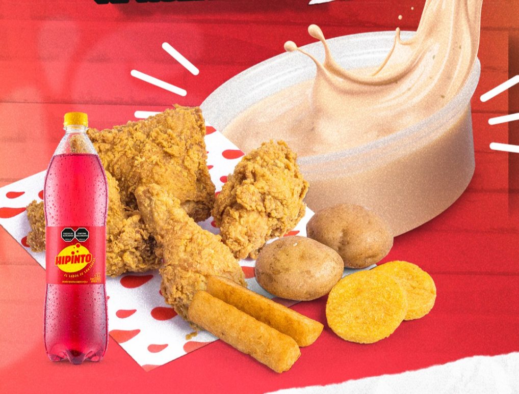 * 4 presas de pollo tradicional con papa, yuca frita y arepa * Gaseosa 1,5 L (sabor sujeto a disponibilidad) * 1 copa de la nueva salsa tártara Jarri’s 4 oz