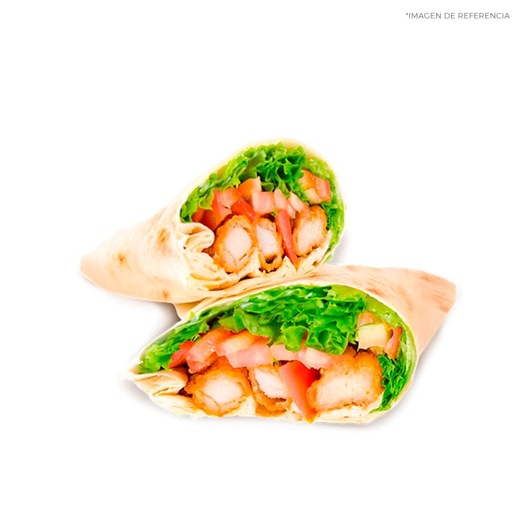 Delicioso burrito de pollo apanado al estilo jarri's, una verdadera delicia para cualquier hora del día. un burrito relleno de crujientes deditos de pollo apanados, trozos de tomate, lechuga y cebolla caramelizada. salsa rancho.