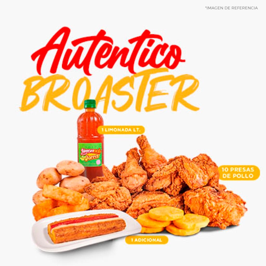 2 Presas broaster (pierna pernil o pechuga ala), 1 porción de francesa mediana, 1 adicional mix personal según selección, 1 bebida personal.