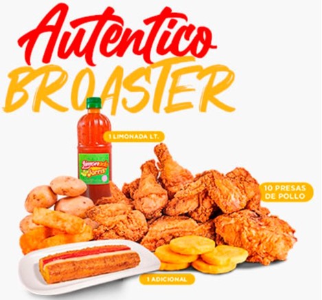 Nuestro delicioso pollo a la broaster familiar de 8 presas es ideal para todos en casa. Disfrutarás de 8 presas del mejor pollo a la broaster, 4 yucas, 4 papas, 5 arepas, 4 miel, 2 salsas de tomate.