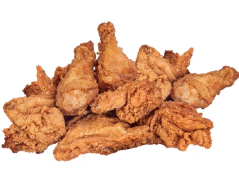 12 Piezas de alas apanadas, bañadas en la salsa que prefieras con 1 porción de papas a la francesa pequeña.