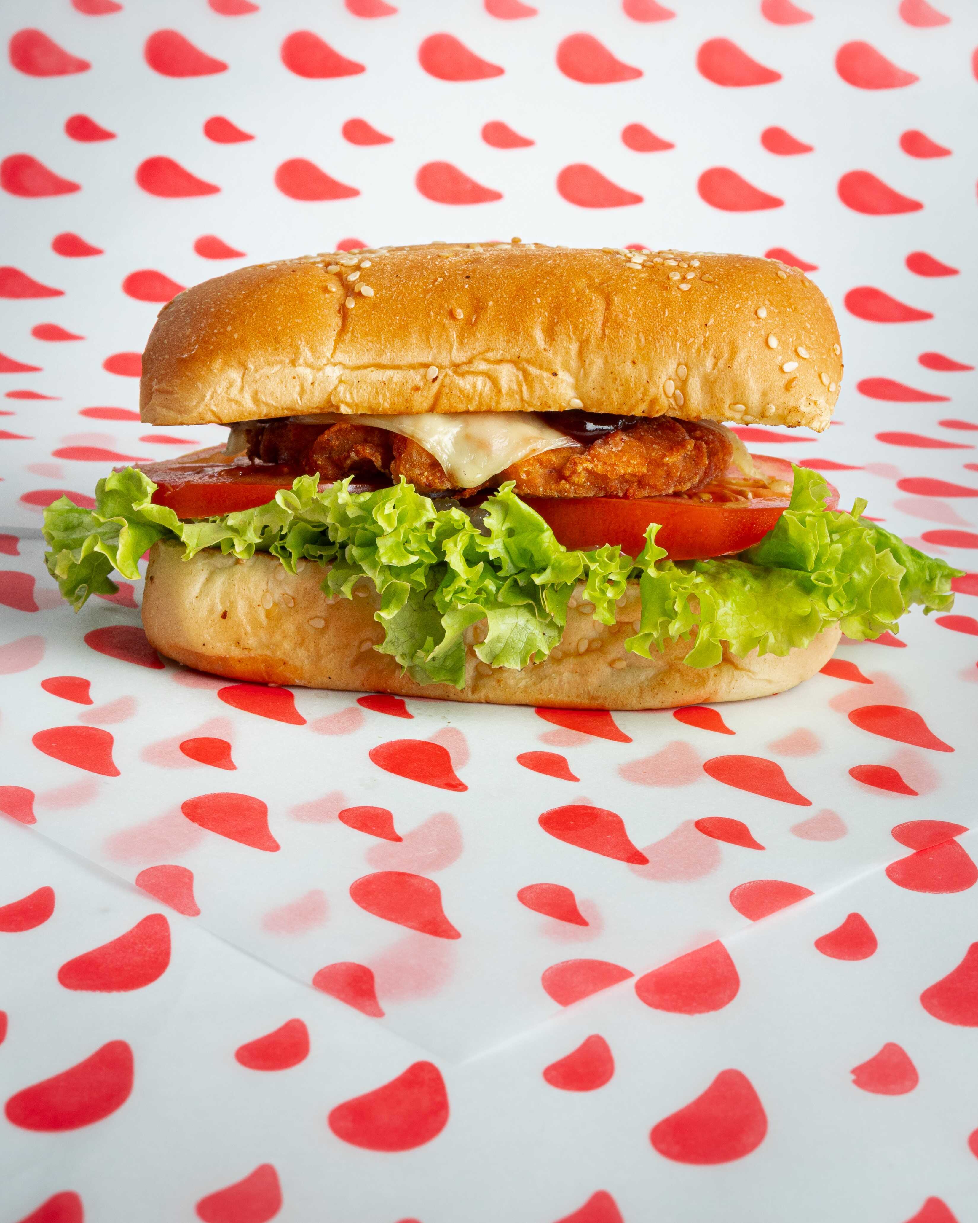 Nuestro único y original chiken crunch, un increíble emparedado de filete de pechuga con exquisita tocineta, jamón y queso en medio. 2 filetes apanados de pechuga de 240 g con tocineta, jamón y queso sabana en el medio.