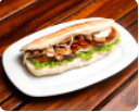 Sándwich con pan, pollo y carne 100 g cada uno, chorizo, butifarra, jamón, queso mozzarella.