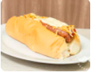 Perro caliente con pan, chongo, queso costeño, salsa de la casa y salchicha grande.