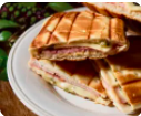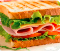 Sándwich con pan, pollo 150 g, jamón y mozzarella.