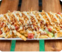 Salchipapa con papas, salchicha alemana, chongo y queso.