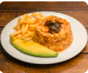 Arroz con pollo 200 g, acompañado de papas a la francesa.