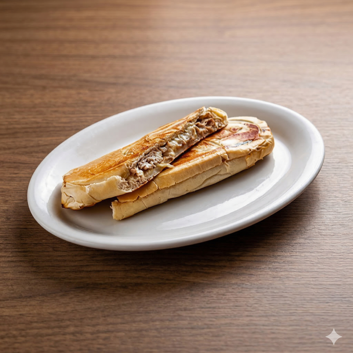 Sándwich gourmet relleno de finos cortes de punta gorda a la plancha.