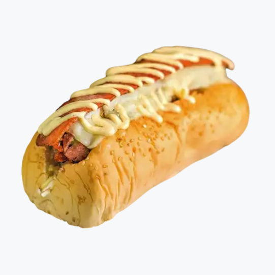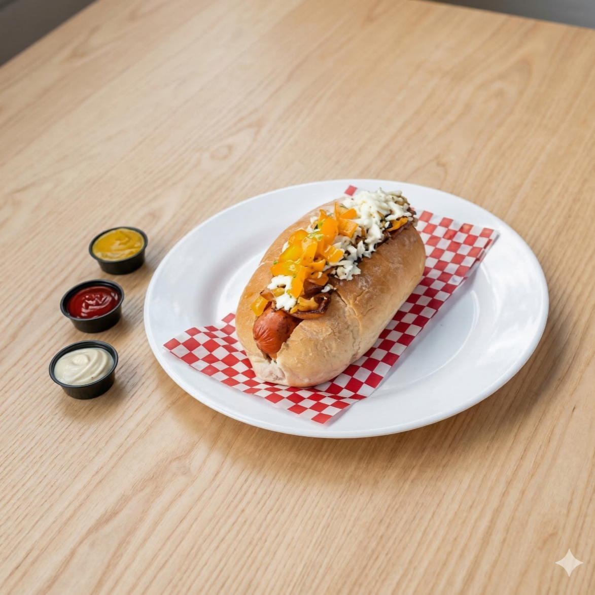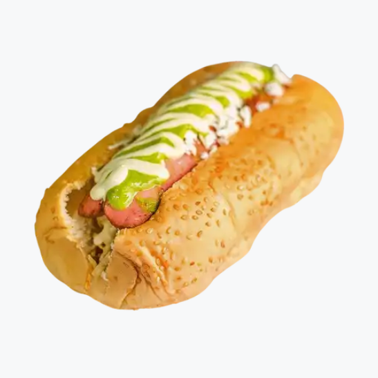 El clásico infaltable: pan artesanal, salchicha de primera, papitas trituradas y nuestras salsas de la casa.