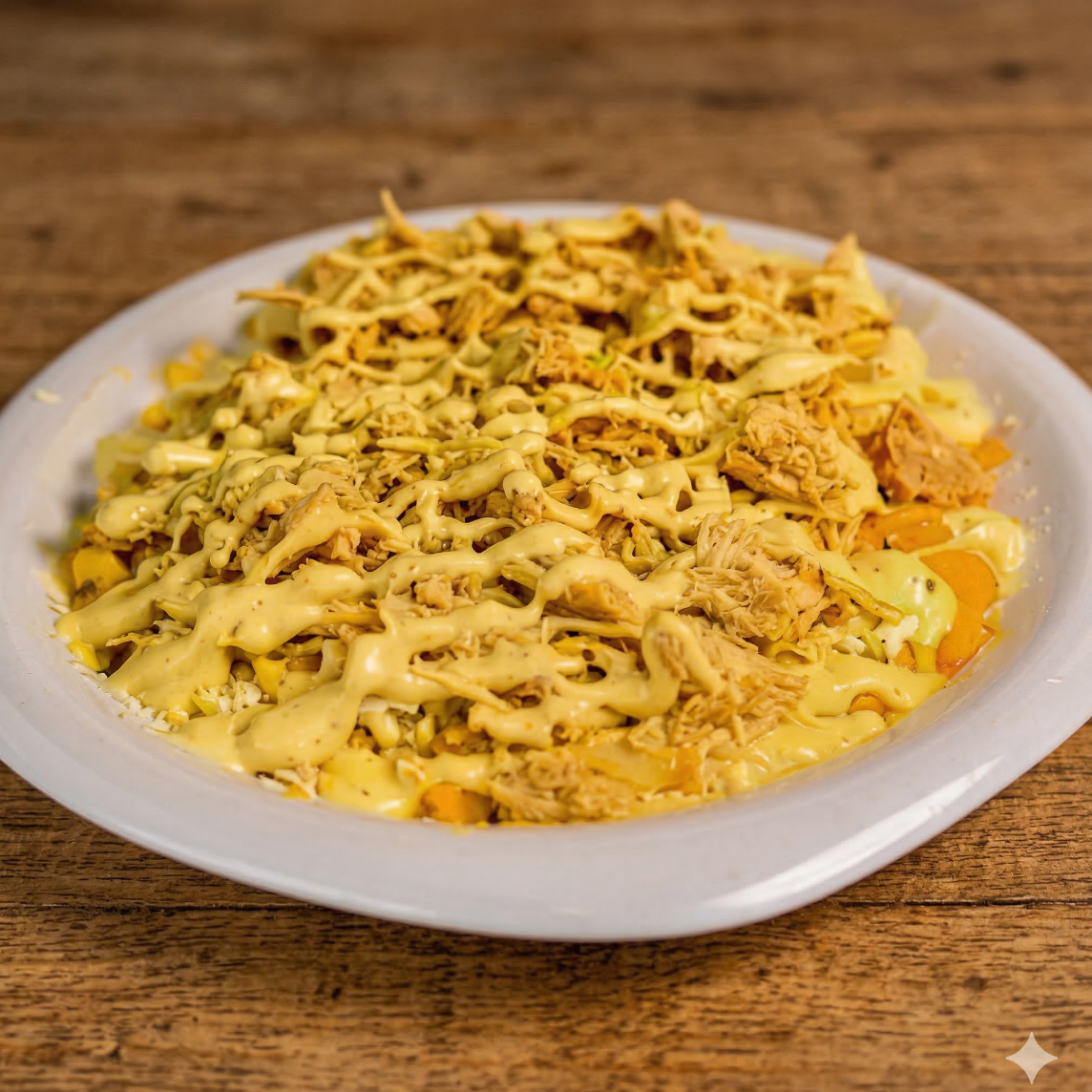 Pollo desmenuzado premium con adiciones especiales que resaltan su sabor.