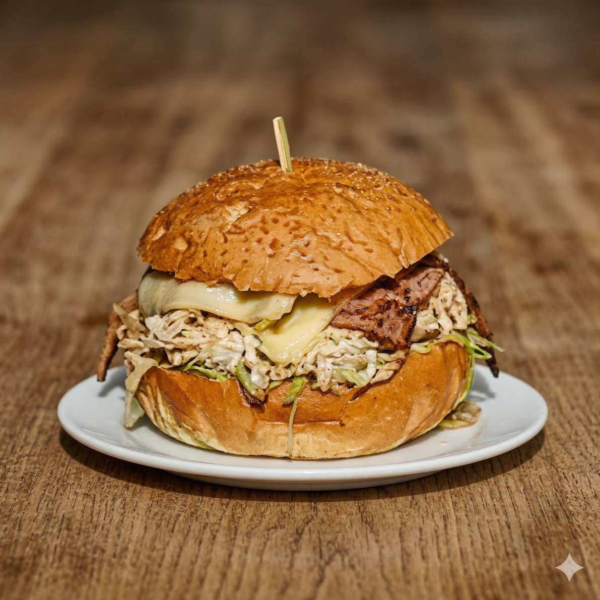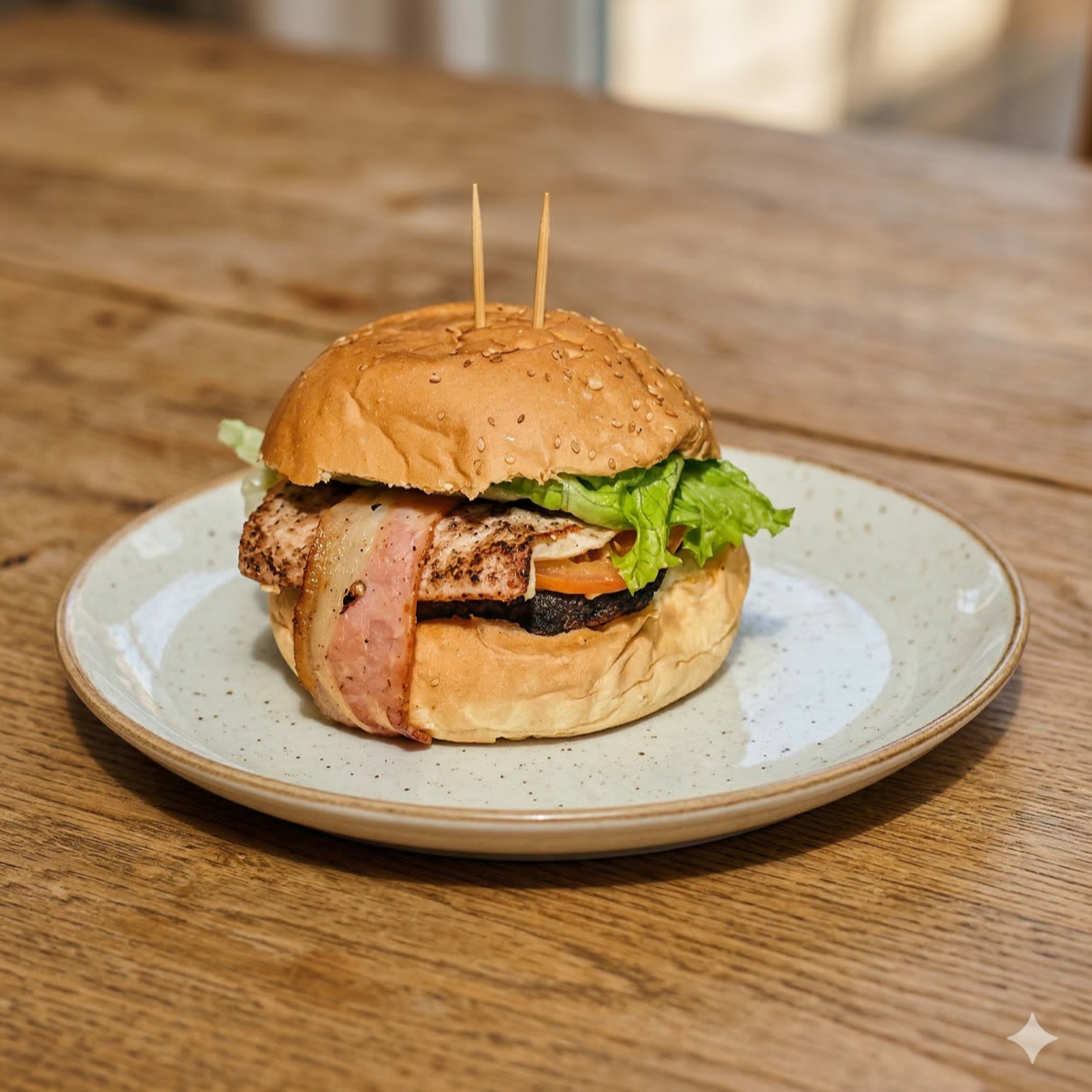 Nuestra burger clásica potenciada con ingredientes extra para una experiencia gourmet.