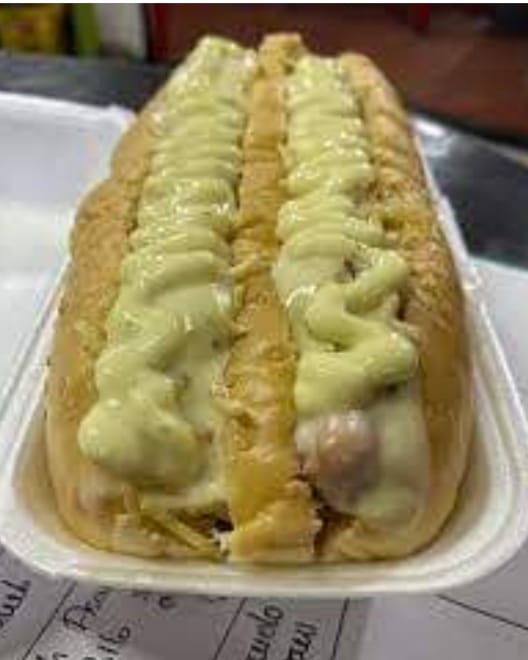 Pan,doble salchicha, mozarella, chongo, lechuga, salsas de la casa