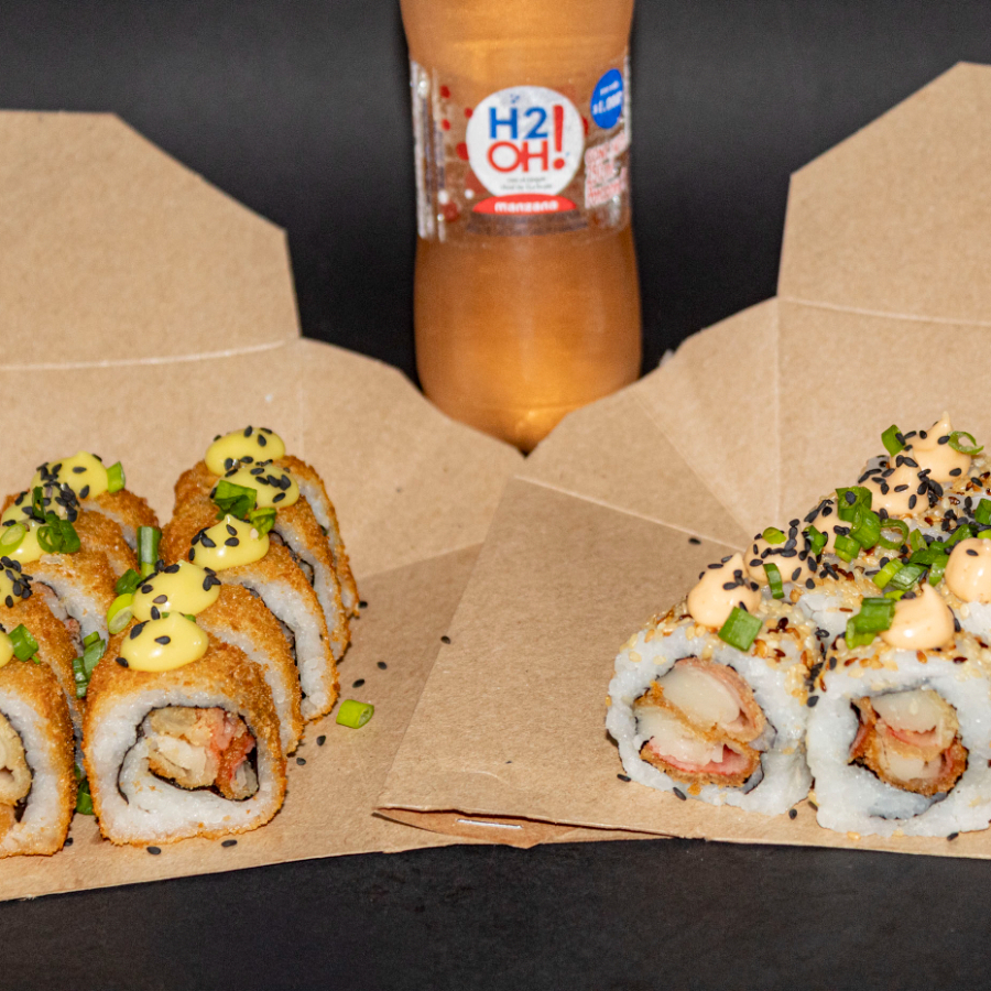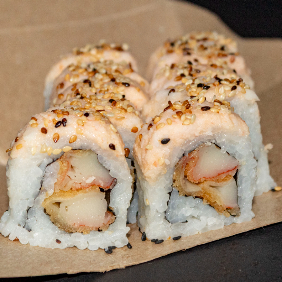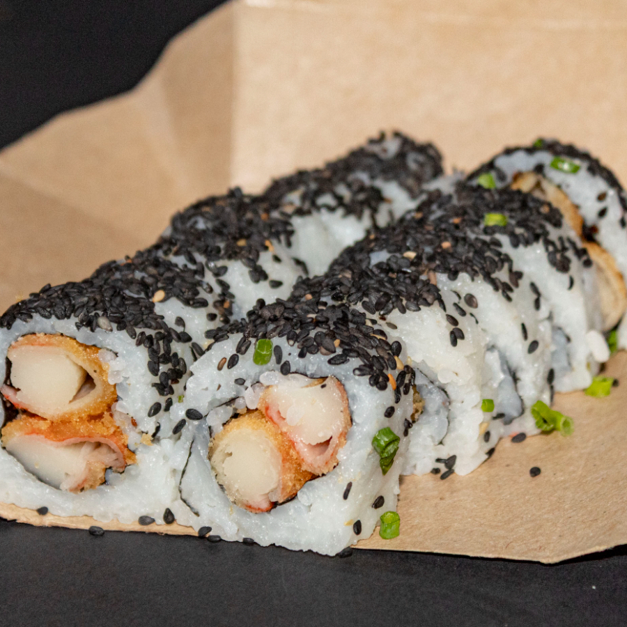 12 Bocados de sushi apanado con kani crispy, queso crema