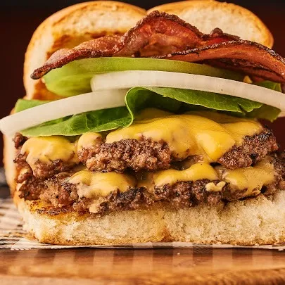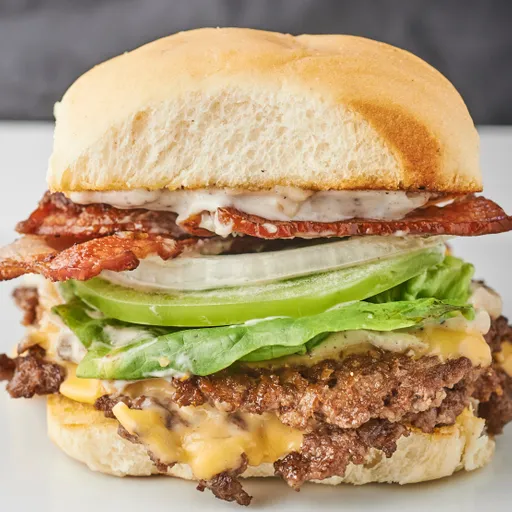 120 g De hamburguesa certified angus beef, tocineta, doble queso americano, lechuga, tomate verde, cebolla y salsa a elección.