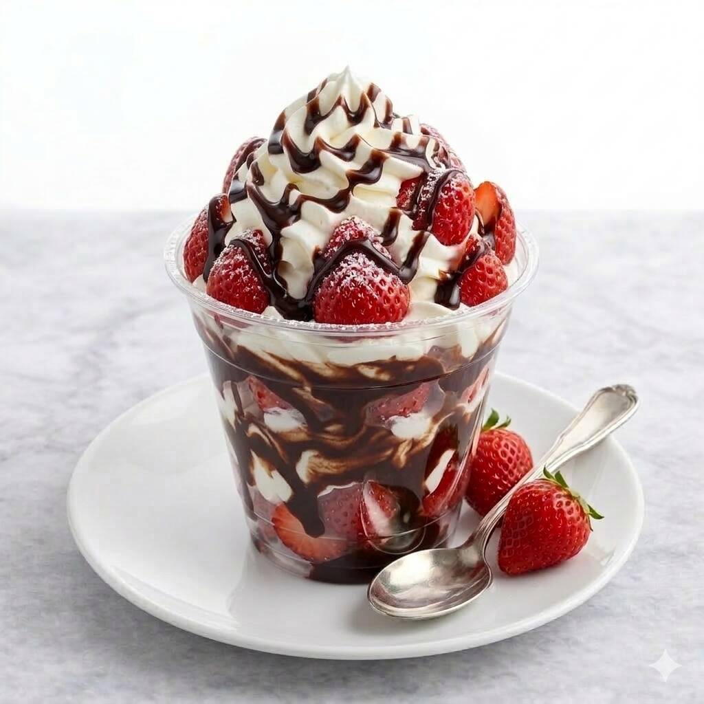 Fresas frescas con crema batida de la casa y salsa de chocolate (12 onzas)