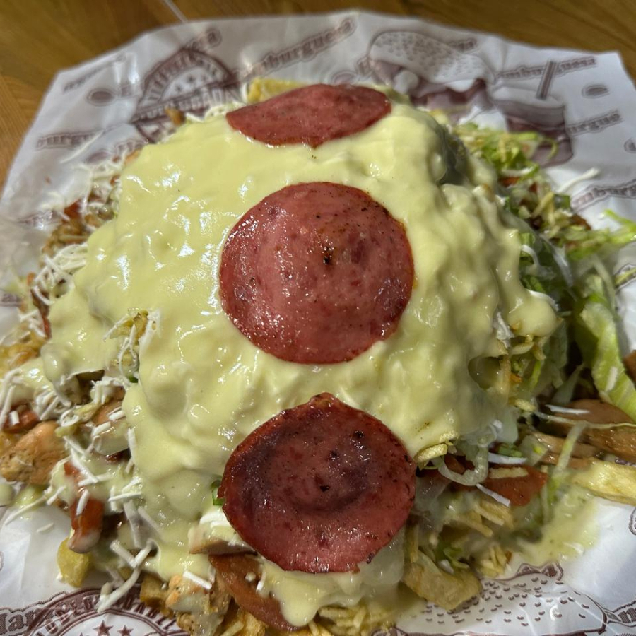 Trae: Salchicha, Pollo, Chorizo, Butifarra, Maiz, Chongo, salsa de la casa.
