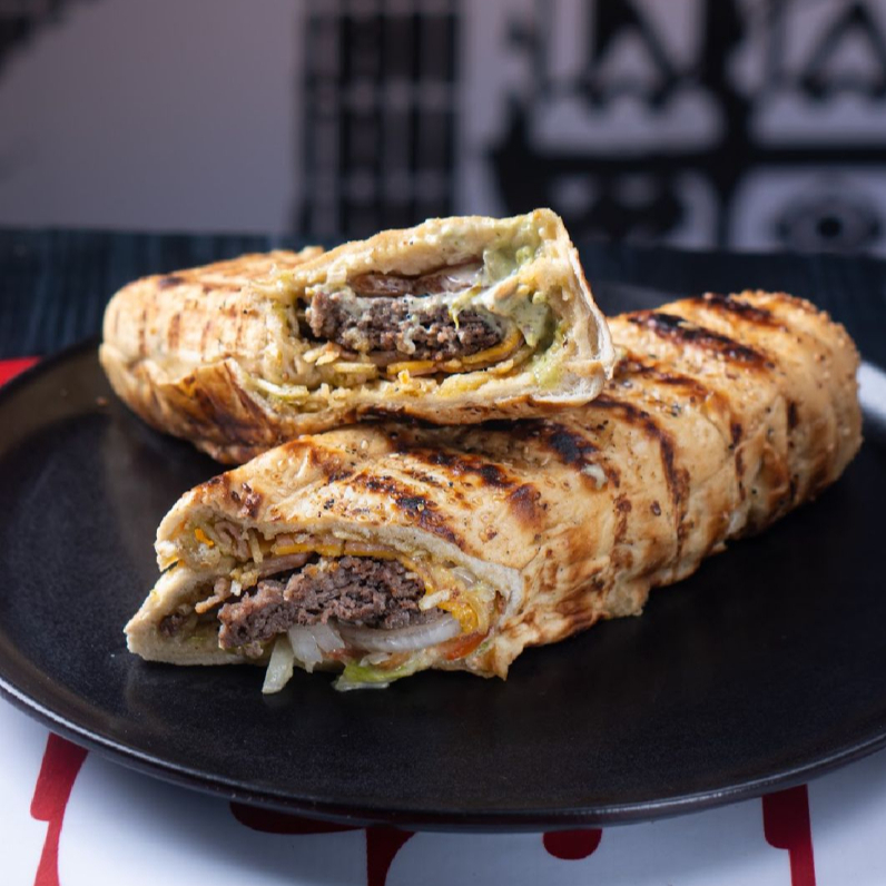 300 g De carne para hamburguesa, angús, lechuga, tomate, cebolla, papita chongo, queso, cheddar, salsas de la casa.