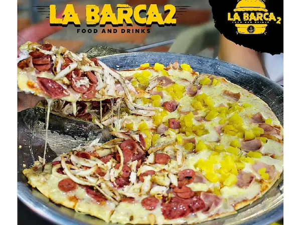 Ingredientes: exquisita salsa de la casa salchicha suiza, rodajas de chorizo, pollo maiz, orégano, queso mozzarella.