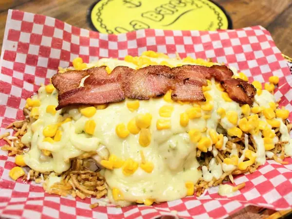 Maíz, pollo, chorizo, tocineta, lechuga, queso costeño y chongo gratinado.