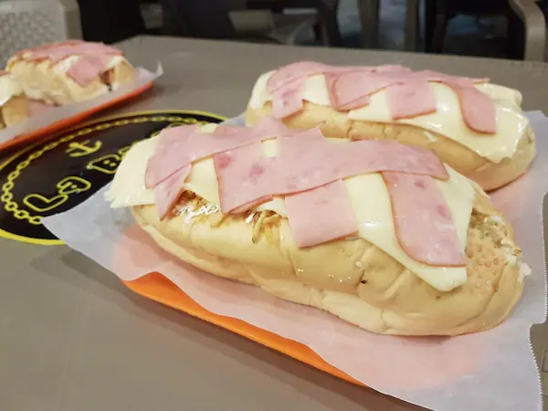 Bollo, pollo, chorizo, butifarra, alemana, jamón, lechuga, queso costeño y chongo.